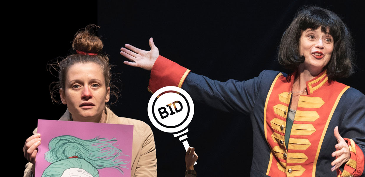 BID – L’Arte in Piazza è uno spettacolo di clown interattivo che vuole fare luce sulla dimensione delle donne pagliacce.  Un’asta pubblica d’arte, in cui il pubblico è invitato a partecipare e il miglior “offerente” si aggiudica un ritratto di una pagliaccia. Il pubblico però non offre soldi, bensì vincerà i ritratti se dimostrerà la propria pagliaccitudine e voglia di giocare.