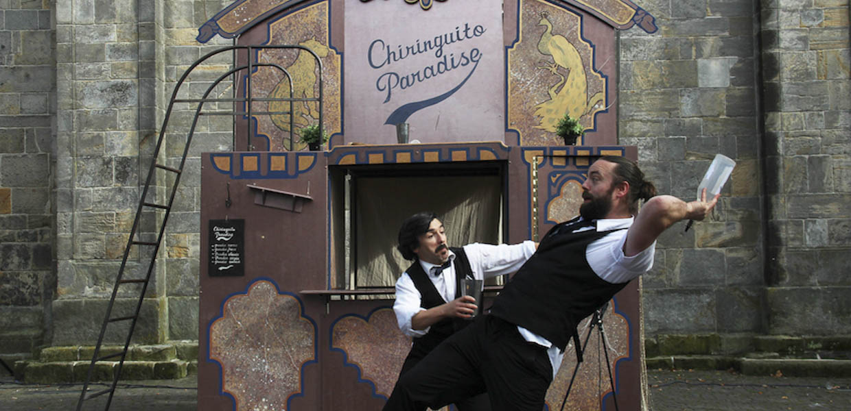 E’ una compagnia belga di circo e teatro di strada creata nel 2016 da Gonzalo Alarcón, di Hopla Circus, e da Joris Verbeeren, di Shake That. Si esibiscono con giocoleria, comicita’, incidenti e manipolazione di oggetti come risorsa per clownerie. Le specialità della compagnia sono giocoleria, commedia fisica e trucchi impossibili! Chiringuito Paradise, diretto da Christine Rossignol, trae ispirazione dalla commedia fisica e dalla sorprendente goffaggine dei più famosi Clown del grande schermo (B. Keaton, C. Chaplin, P. Sellers …), ma ugualmente dalla semplicità e dalla profondità di una drammaturgia, che richiama caratteri universali. Questo principio ha spinto la compagnia a sviluppare un linguaggio comico che può essere vicino a quello della commedia comica, ma allo stesso tempo soddisfa i requisiti di uno spettacolo di strada. La compagnia si avvicina alla comicità come una serie di micro situazioni sgradevoli e spassose, inserite in uno scenario incentrato sul caos e gli incidenti. L’exploit svolge anche un ruolo importante nello spettacolo. Cadute, incidenti, giocoleria e manipolazione degli oggetti aggiungono un tocco spettacolare alla performance.