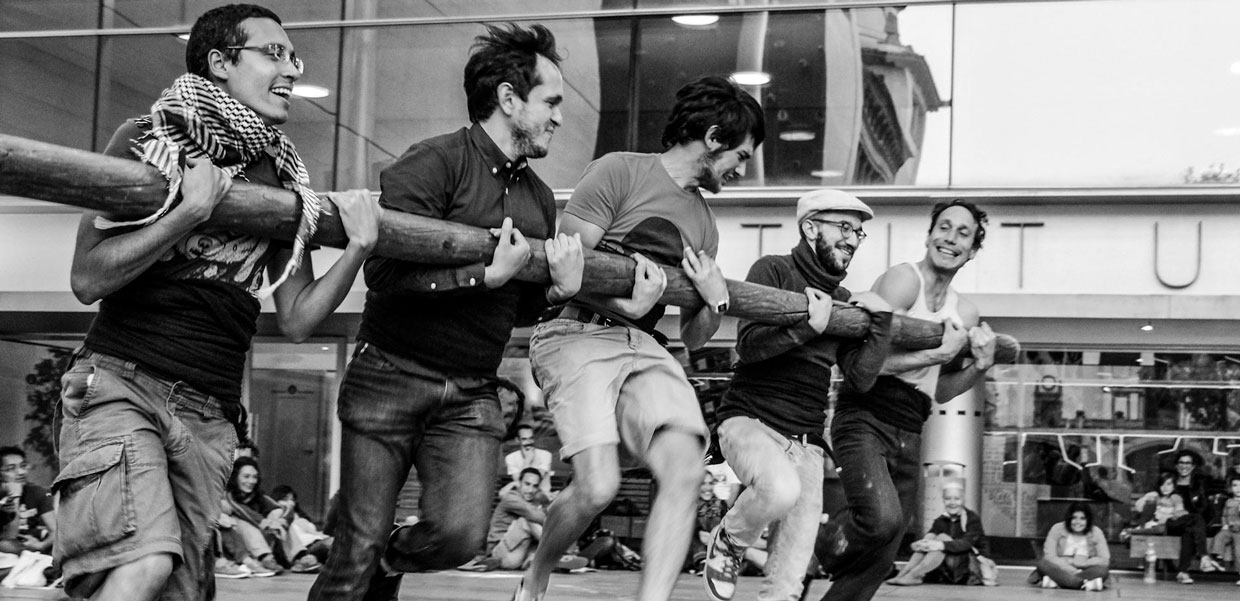 Pelat è pura magia, effimera, creata nel qui e nell’ora. È uno spettacolo circense per lo spazio aperto; inizia con un pesante tronco d’albero, un uomo e una cerchia di estranei – che alla fine dello spettacolo si trasformano in una comunità viva e gioiosa. Pelat è calore, aspettativa, forza, tensione e magica, spontanea partecipazione. Pelat è poesia del corpo. Pelat è innovazione, movimento e azione collettiva. Pelat è un’azione artistica rischiosa, sincera e necessaria che interrompe momentaneamente tutte le possibili divisioni, creando un’esperienza condivisa del mondo. Joan Català si rivolge ai nostri desideri: appartenere, sostenersi a vicenda, meravigliarsi, giocare. Ci ricorda il valore della leggerezza, del non prenderci troppo sul serio. Pelat crea un cerchio di fiducia e ci aiuta a diventare migliori vicini, l’uno con l’altro.